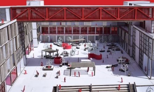 το Πρότυπο Γυμνάσιο + οι Υπηρεσίες του Δήμου + το ΚΕΜΟΝΤΕ, αποκτούν κτιριακή συνέχεια και μορφολογία ενιαίου συνόλου, με όμοιες πόρτες και παράθυρα, παρόμοιους χρωματισμούς και σήμανση, διακριτές εισόδους, κοινά αίθρια και κοινές αυλές.