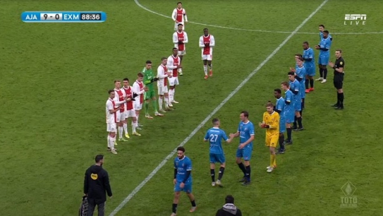 Υπέροχη χειρονομία από τους παίκτες των Άγιαξ και Εξέλσιορ, που σχημάτισαν έναν διάδρομο τιμής όταν ο Ντέβιν Πλανκ που δίνει μάχη με καρκίνο, πέρασε στον αγωνιστικό χώρο.