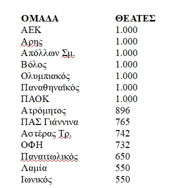 Ας δούμε λοιπόν πόσοι θα μπορούν να μπουν σε κάθε γήπεδο της κατηγορίας.