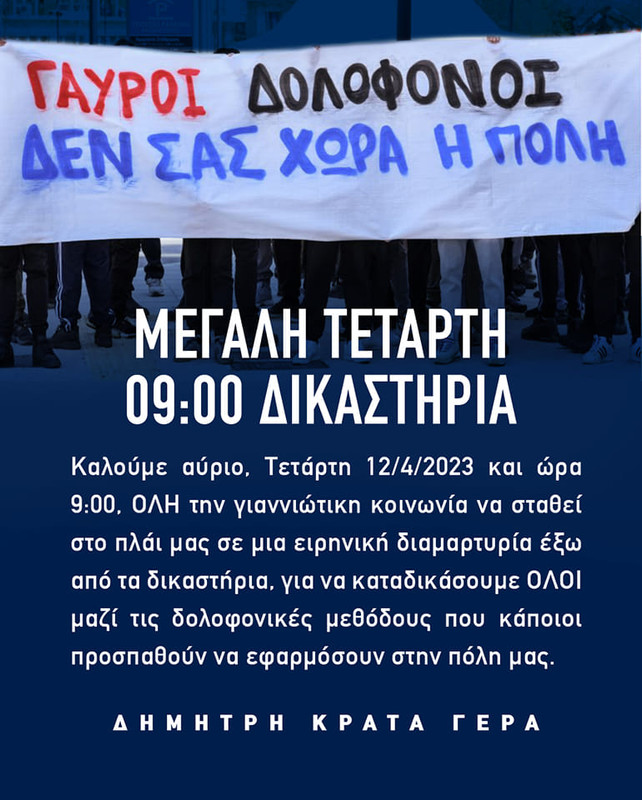 Υποχρέωση όλων μας αυριο να είμαστε έξω από τα δικαστήρια. Γίνεται συντονισμένη προσπάθεια να αλλοιωθουν τα γεγονότα. Ακουγεται από έγκυρες πηγες ότι από την Παρασκευή το βράδυ έγιναν επαφές γονέων με κυβερνητικά στελέχη. ΔΕΝ ΘΑ ΤΟ ΑΦΗΣΟΥΜΕ ΝΑ ΠΕΡΑΣΕΙ ΕΤΣΙ. ΔΙΚΑΙΟΣΥΝΗ.