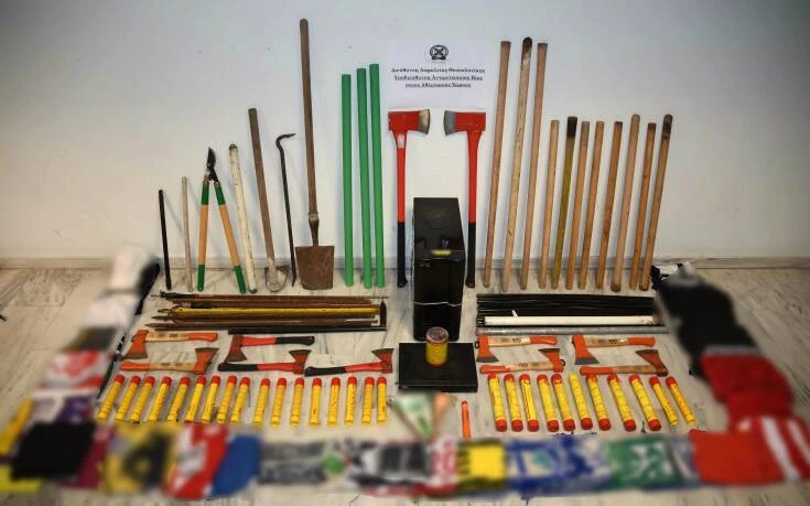 Ηλικίας 22-25 ετών οι συλληφθέντες, βρέθηκαν φωτοβολίδες, σιδερογροθιά, σουγιάδες, πτυσσόμενο μαχαίρι