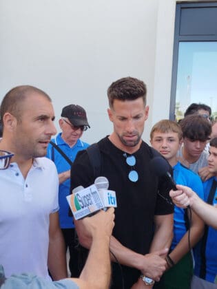 Βγαίνοντας από την αίθουσα αφίξεων του αερ4οδρομίου “Βασιλεύς Πύρρος” υπέγραψε δεκάδες αυτόγραφα και φωτογραφήθηκε με τον κόσμο που τον αποθέωσε και στη συνέχεια έκανε και κάποιες σύντομες δηλώσεις στα τοπικά ΜΜΕ: