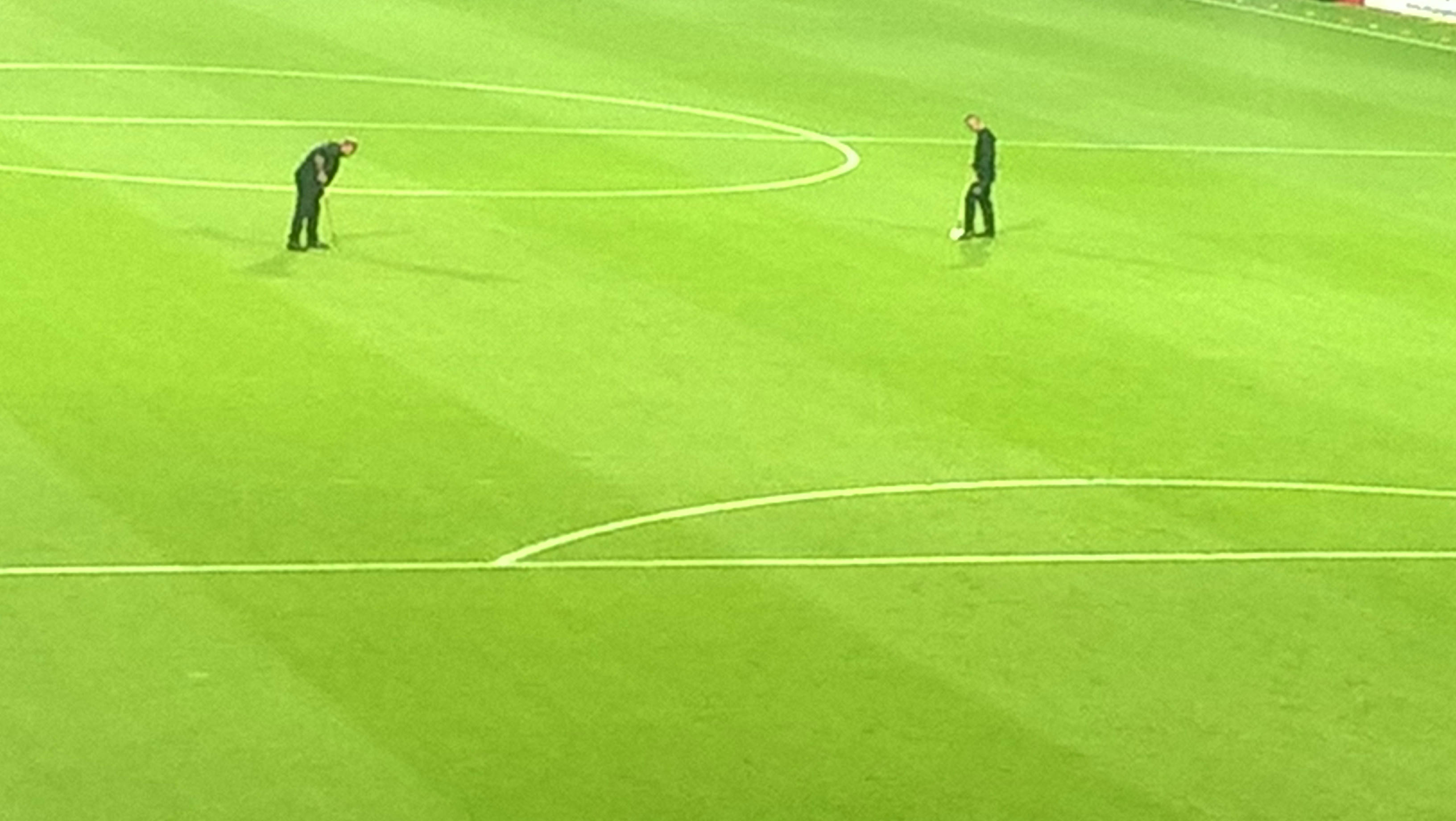Στο ημίχρονο οι κηπουροί πατούσαν το γκαζόν με ειδικά εργαλεία. Τι χλιδή... ντρέπονται να πατήσουν το γκαζόν στη θέση τους με τα ποδάρια τς όπως εμείς;