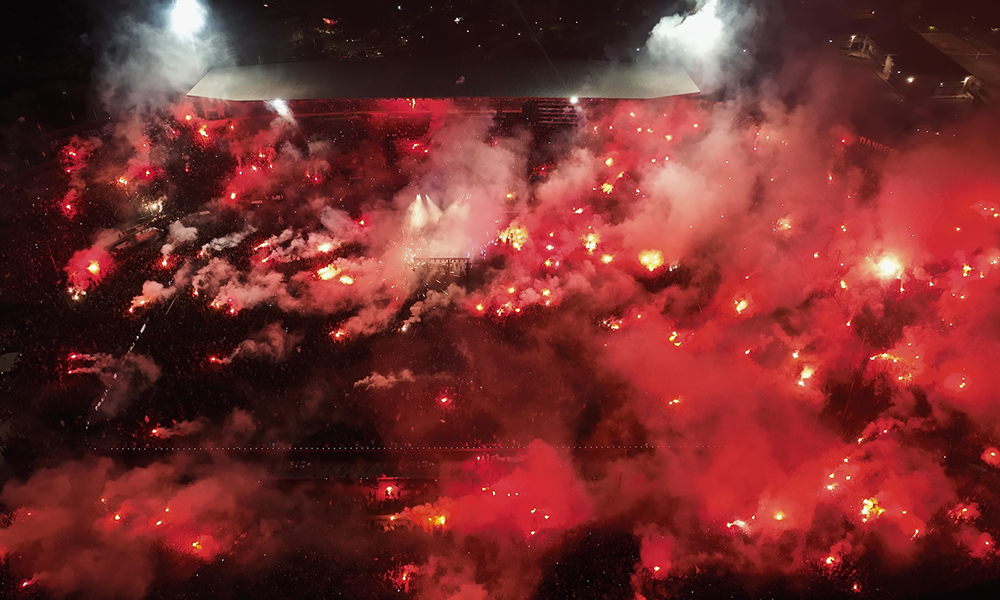 Σε πλήρη αντίθεση με την υπερπαραγωγή του 2019, όταν γιορτάστηκε η κατάκτηση του πρωταθλήματος, αυτή τη φορά η προετοιμασία για τη φιέστα έγινε στα… κρυφά και με προσωπικό που γνώριζε ότι δεν θα πρέπει να διαρρεύσει τίποτα προς τα έξω. Για πρώτη φορά οι δοκιμές έγιναν με τα φώτα ανάποδα, να χτυπάνε προς τα κάτω και όχι προς τα πάνω, με χαμηλωμένο τον ήχο για να μην καταλάβεις κανείς το παραμικρό. Όλοι όσοι πήγαιναν στην Τούμπα, μετά το τέλος του αγώνα στο «Κλεάνθης Βικελίδης», για να πανηγυρίσουν την κατάκτηση του πρωταθλήματος, δεν γνώρισαν τι ακριβώς θα αντίκριζαν τα μάτια τους.