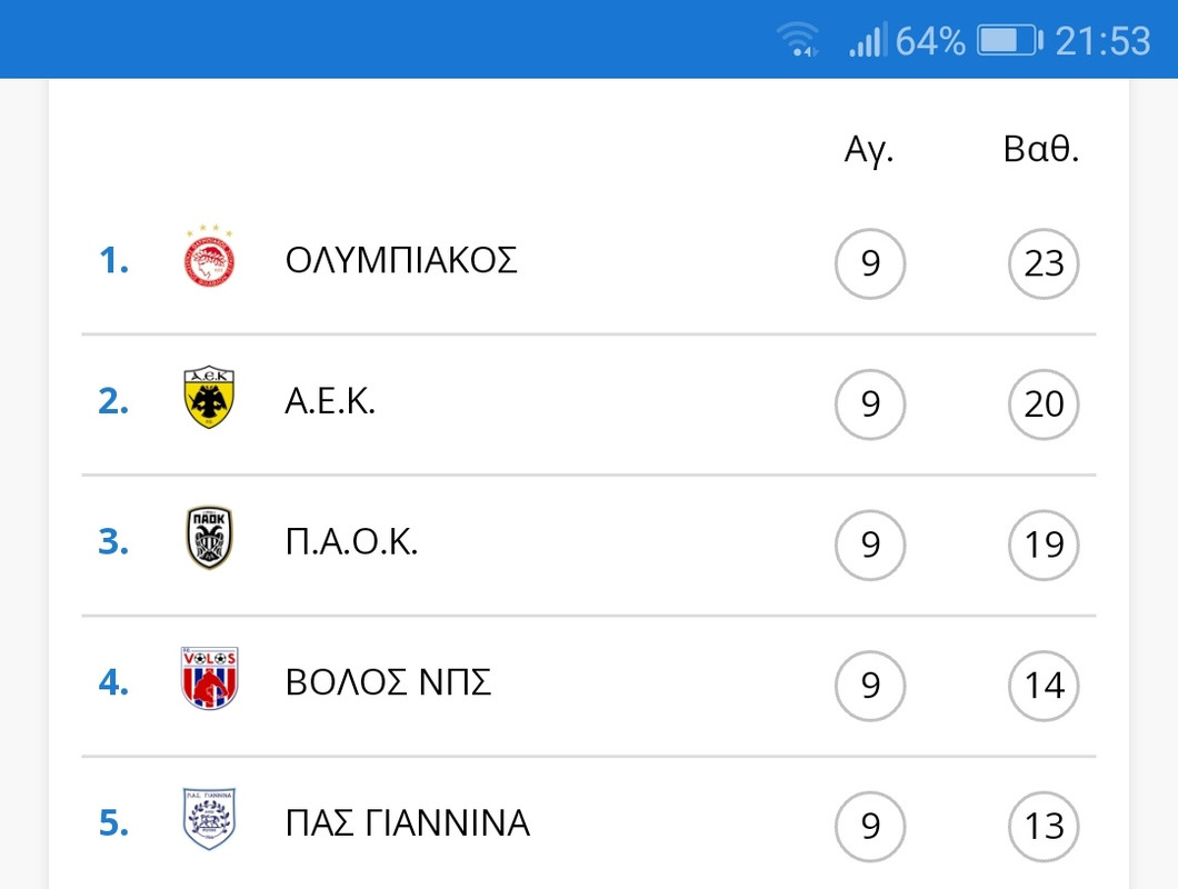 Μετά λοιπόν και το τέλος της 9ης αγωνιστικής, φιγουράρουμε μόνοι μας στην 5η θέση!