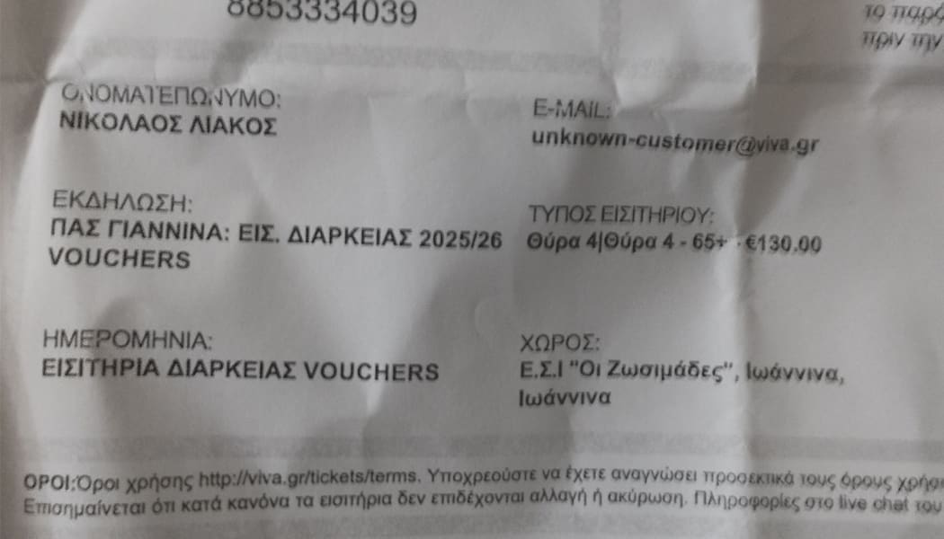 Επιστρέψτε μου να πω, ότι πολλοί στα Γιάννενα ήδη το ξέρουν αυτό και για αυτό δεν παίρνουν διάρκειας.